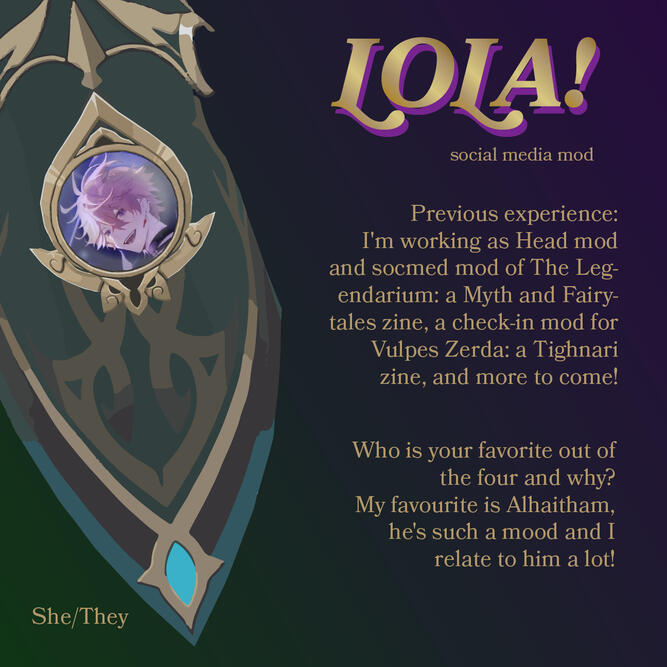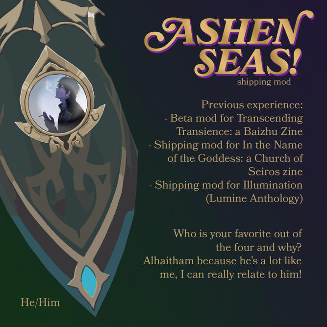 We know that there are multiple different spellings going around. In order to remain consistent, we will be using the Genshin Impact ENG spelling, "Alhaitham" and will be making sure that the content is standard across the zine.How old do you have to be to participate?