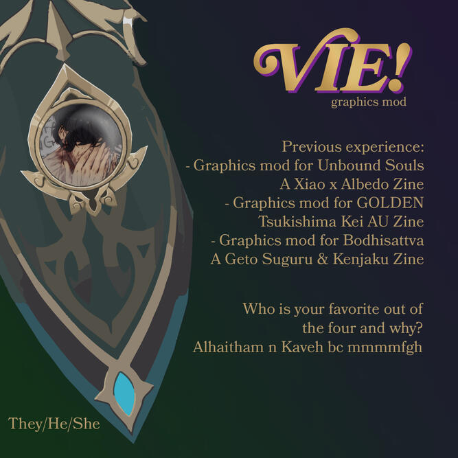 We know that there are multiple different spellings going around. In order to remain consistent, we will be using the Genshin Impact ENG spelling, "Alhaitham" and will be making sure that the content is standard across the zine.How old do you have to be to participate?